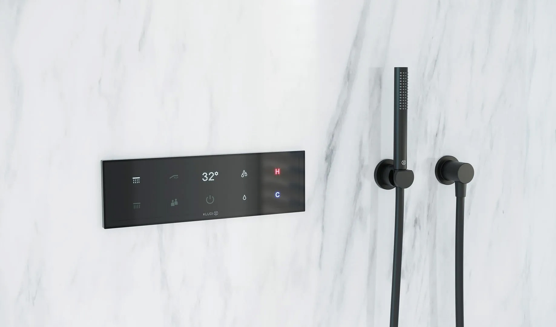 Dass wir Vieles im Alltag digital bedienen, ist für die meisten längst komfortable Normalität. Auch in die eigenen vier Wänden halten digitale Steuerungen und vernetzte Geräte zunehmend Einzug. Rund 28 Millionen Haushalte in Deutschland sollen nach einer Prognose von Statista aus dem letzten Jahr bis 2026 mit smarten Lösungen ausgestattet sein. „Smart Living ist für viele Menschen, insbesondere für die Generation, die mit der Digitalisierung aufgewachsen ist, der Inbegriff eines zeitgemäßen Lebens- und Wohnstils – auch im Bad. Für sie macht Kludi jetzt die Dusche smart“, erläutert Leonardo de Muro, Group Marketing Vice President. Mit Kludi-PushTronic und Kludi-TouchTronic hat die Premiummarke aus dem Sauerland für diese wachsende Zielgruppe gleich zwei digitale Duschsteuerungen für Highend-Anwendungen entwickelt, die für ein rundum smartes Duscherlebnis sorgen.
